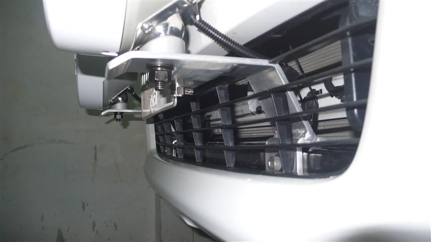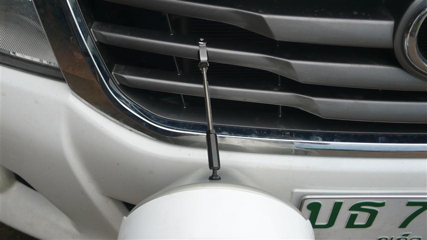 ผมลองเอาเหล็กเทียบเท่าขายึดของจริงวางตำแหน่งที่คิดไว้ จะยึดกับกระจังตำแหน่งนี้ครับ ผมมั่นใจว่าเอาอยู่ ฮิฮิฮิ เพราะกิ๊บล๊อกกระจังผมได้เปลี่ยนเป็นน๊อตหมดแล้ว ไม่เปลี่ยนโยกไปโยกมาหลวมตายเลย จะดึงไปซ้ายให้ขนานกับแนวเหลี่มกระจัง ก็แปลกๆ จะดึงเข้ามาให้เป็นลักษณะตัว v คว่ำมันจะดูขัดๆกับรูปทรงกระจังไปมั๊ย แต่ถ้าดึงตรงเหมือนในรูป ผมว่าน่าจะโอเคสุด แต่เดี๋ยวของจริงมาค่อยว่ากันอีกที