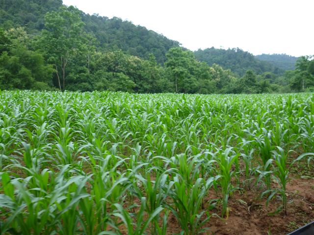 เส้นทางเข้า ข้างทางส่วนใหญ่เป็นไร่ข้าวโพด
