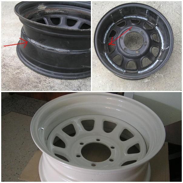 -รูปแนบคต.นี้ ....ล้อเหล็กของ ROCK CRAWLER ชนาด 7 X 16 เป็นวงล้อที่เลื่อนได้จนถึง -40 โดยไม่ต้องกลับด้านวงล้อ แต่ต้องเจียรขาหน้าจาน ซึ่งพับไว้ออกราวๆ (5) มม. (รัศมีหน้าจานเท่าเดิม) ถ้าไม่เจียร จะได้ราวๆ -35 ครับ