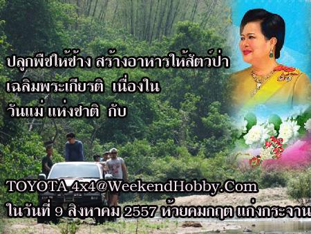 ขอเชิญเพื่อนๆสมาชิก TOC ทุกท่านที่ไม่ติดภารกิจร่วมโครงการวันแม่แห่งชาติประจำปี 2557 กับกิจกรรม" ปลูกพืชให้ช้าง สร้างอาหารให้สัตว์ป่าเฉลิมพระเกียรติ " ณ.บ้านโป่งพรม(บริเวณห้วยคมกฤต)อุทยานแห่งชาติแก่งกระจาน ในวันเสาร์ที่ 9 สิงหาคม 2557ทริปนี้ที่แก่งกระจานป่ายังไม่เปิดให้เข้าไปแต่ครั้งนี้เป็นกรณีพิเศษเพื่อนๆจะได้สนุกกับเส้นทางใหม่สำหรับออฟโรด ท่านใดจะร่วมกิจกรรมแจ้งชื่อ-นามสกุล หมายเลขทะเบียนรถ และจำนวนผู้ติดตาม ภายใน 3 ส.ค.2557 นี้นะครับเพื่อจะได้จัดรถให้พอเพียงกับผู้ที่มาร่วมงาน(รายละเอียดต่างๆตามเอกสารที่แนบมา ส่วนกำหนดการเดินทางสำหรับกลุ่ม Off-Road คงจะเป็นช่วงค่ำๆของวันศุกร์ที่ 8 สิงหาคม2557) ข้อมูลเพิ่มเติมที่ 089-4572767 ป้อม bluezone