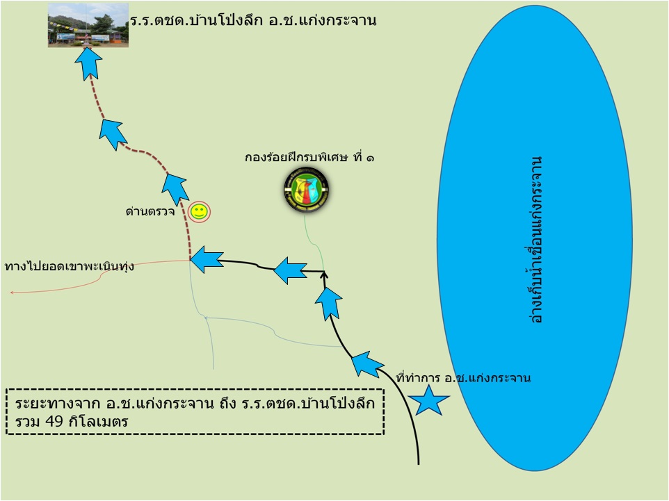 แผนที่เส้นทางจาก อช.แก่งกระจาน ไป ร.ร.ตชด.บ้านโป่งลึก ต.ห้วยแม่เพรียง อ.แก่งกระจาน จ.เพชรบุรี