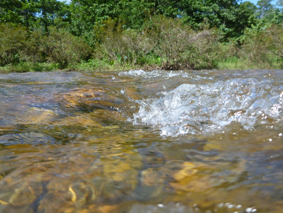 น้ำใสไหลเย็น เอี่อยๆไม่ลึก พื้นเป็นหินกลมๆเล็กๆ ไม่มีโคลน ย่ำแล้วไม่ขุ่น เหมาะเหม็ง
