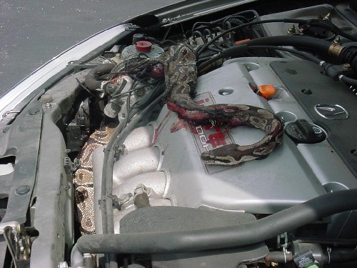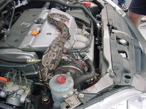 ผมเคยประสบกับตัวเิองเ ขับจากราชประสงค์ไปทำงานที่สาธร (แบงก์เอเชีย) ได้ยินเสียงอะไรแว่ว ๆ แต่ไม่ได้เอะใจ จนจอดรถกินข้าว รปภ.มาตาม ไปเปิดประโปรงรถดู ลูกแมวเข้าไปอยู่ตั้งแต่เมื่อไรก็ไม่รู้ ดีว่าไม่โดนปั่นเหมือนเ้จ้าตัวข้างบน