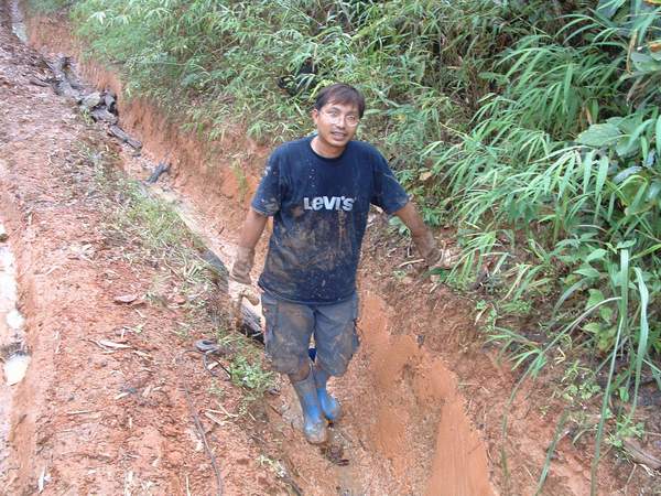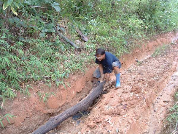 บางร่องก็มีคนเอาไม้ซุงมารองร่องไว้ อาจเป็นอันตรายทิ่มยางได้ ต้องยกกันออกอีก เหนื่อย....