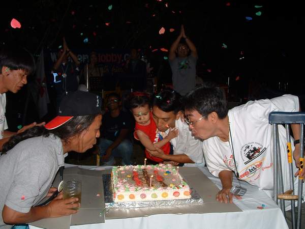 ต่อมาเราก็ได้เวลาเป่าเทียน เค้กวันเกิดร่วมกัน โดยผู้อาวุโสของทั้งสามชมรม และคุณติ่งเวปมาสเตอร์ของเราด้วย