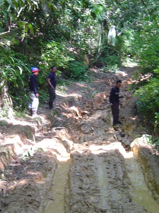 ตีลูกซึมขึ้นนั่งหน้าไปกับท่านหัวหน้า ชวนแกคุยตลอด (ลึก ๆ แล้ว หวังฟลุ๊กจะเข้าไปพักข้างในหน๊ะ ) ทางเข้าไปส่วนมากจะเริ่มแห้งแล้ว..แต่ยังทิ้งร่องรอยโหดๆ อยู่หลายจุด