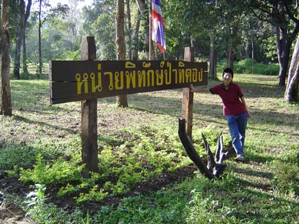 ในที่สุดก็มาถึง เขตรักษาพันธุ์สัตว์ป่าทุ่งใหญ่นเรศวร แต่ข้อมูลที่ได้มาผิดพลาดอย่างแรงเลยครับ ตอนนี้เค้ายังไม่เปิดให้เข้า ต้องประมาณต้นเดือนธันวาโน่น..จะขอความอนุเคราะห์ยังไงท่านหัวหน้าก็ไม่ยอม ห้ามรถผ่านเด็ดขาด ยังดีที่อนุญาตให้กางเต้นท์นอนแถว ๆ บ้าน จนท.ได้ 1 คืน