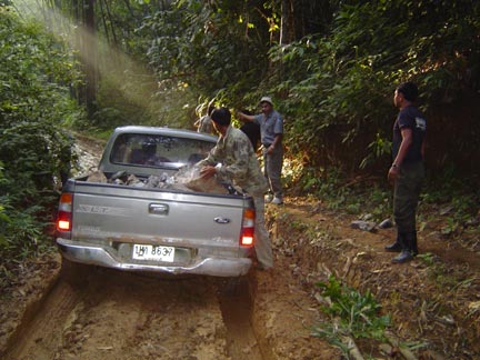 ขณะยืนเก้ๆกัง ท่านหัวหน้ากำลังประชุมลูกน้อง เพื่อเตรียมการสำหรับ สิ่งปลูกสร้างและการซ่อมทางเพื่ออำนวยความสะดวกแก่นักท่องเที่ยว..เลยออดอ้อนขอติดรถเข้าไปด้วย. (ดวงชักดีขึ้นแฮะ.. )