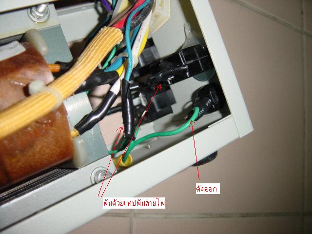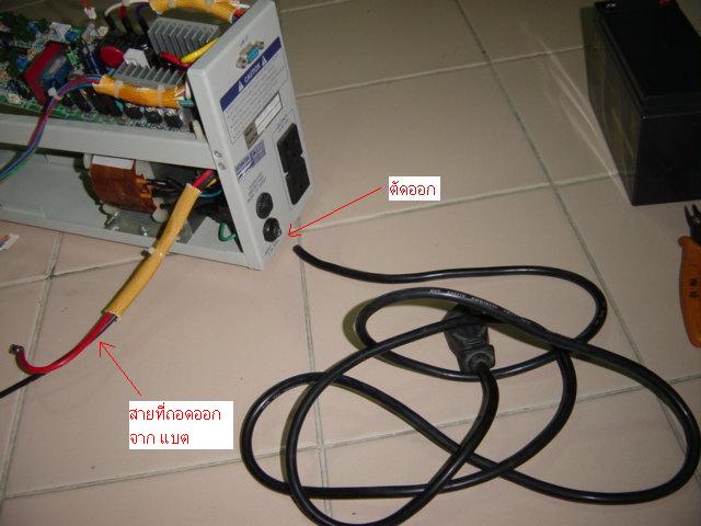 3.ตัดสายไฟ200Vที่เสียบไฟบ้านออก แล้วเอาสายที่มาจากBATTของUPSใส่แทน ออ้สายไฟ220Vที่ตัดออกพันด้วยเทปพันสายไฟด้วยนะเดี่ยวจะซ๊อตกันเข้า