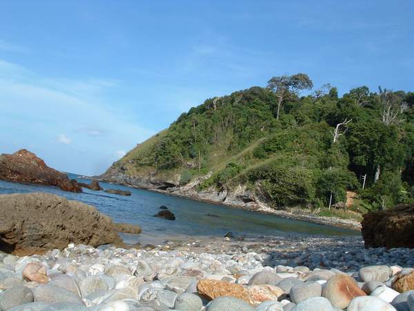 ชายหาดก้อนหิน แต่ละก้อนส่วนใหญ่จะมีลักษณะกลม เวลาคลื่นซัดมากระทบจะเกิดเป็นเสียงโทนต่าง ๆ เป็นเสียงดนตรีธรรมชาติที่ไพเราะยิ่ง (เค้าเล่าให้ฟังน่ะครับ เมาเลยลืมไปฟัง)