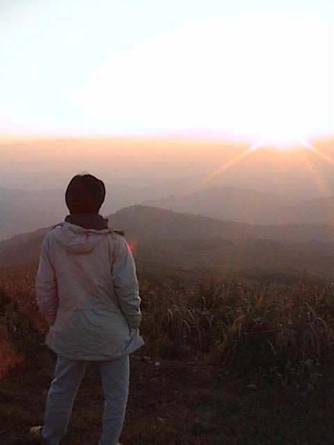 ถึงยอดดอยพระอาทิตย์กำลังตกพอดีครับ รถคันในภาพเป็นของพี่น้องแบล็ค คนในรูปเป็นน้องแขก แม่ครัวของทริปนี้ ขอบคุณครับ