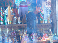 ภายในโบสถ์วัดศรีเมืองชาวลาวกำลังสักการะเจ้าแม่หลักเมือง ผมถ่ายมาโดยไม่รู้ว่าเขาห้ามถ่ายรูป เพราะเข้าประตูหลัง เลยไม่เห็นป้ายห้ามถ่ายรูป