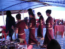 สาวลาวกำลังสาธิตการรำวงสามัคคี ในลาวมีแต่รำวงพวกคองโก ไม่มีแร๊ป