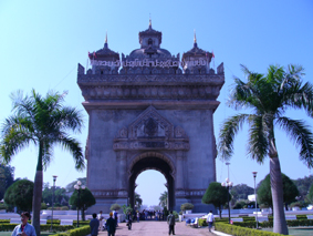ประตูชัยเลียนแบบฝรั่งเศสสูง40กว่าเมตร ขึ้นไปจะเห็นทิวทัศน์ทั่วเวียงจันทร์ แต่ผมไม่ได้ขึ้นมีแต่XYLกับเด็กๆขึ้นไป ผมมั่วแต่กินเขยลาวอยู่ติดลม