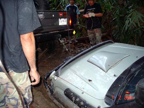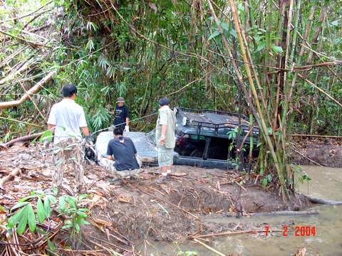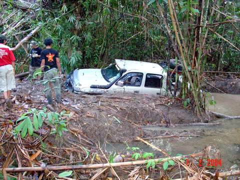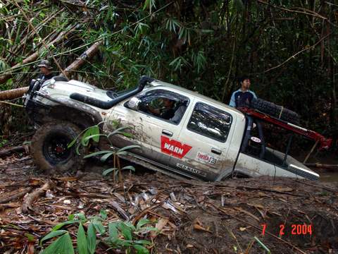 กลับมาแล้วครับจากน้ำตกผาสวรรค์บน นำทีมโดยเฮียเส่ง เมืองใหม่รวมช่าง เช้าวันที่ 7 ก.พ. 47 พวกเราไปถึงก็รอพวกเฮียเส่ง มีช่างเล็กเจ้าของกันชน TKS,พี่จ๋าขับ DISCOVERY,พี่พลขับคาริเบียน ฝนก็ตกลงมาต้อนรับเราแต่เช้าทำให้เส้นทางสนุกมาก มีทั้งน้ำทั้งโคลนและความเสียหายที่ได้รับคือ รถผมแร็คหลังคาโดนกิ่งไผ่เกี่ยวหลุดลงมากองกับพื้น ขายึดสนอร์คเกิ้ลฉีก,รถนายเต่าแค้ปบุบ คิ้วล้อซ้ายหลังฉีก,รถเฮียเส่งแหนบกลับ วิ้นซ์ตัดตอนขาออก,รถพี่จ๋าขาออกขับได้แค่2ล้อหลัง สลิงวิ้นซ์ขาด3ครั้ง บุชคันชักคันส่งหักต้องเชื่อมกันในป่า,รถช่างเล็กเครื่องฮีท,รถพี่พลน้ำเข้าต้องต้องล้างหัวเผา