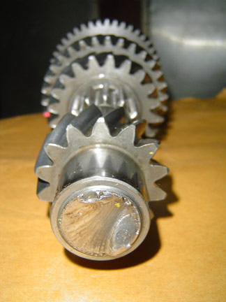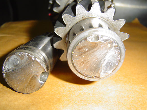 จากรูปน่าจะเกิดจากความเค้นหนาแน่น(Stress concentration) ตรงรูเจาะนั่นแหละคะ สังเกตดูมันเริ่มขยายรอยแตก (Crack) ตรงจุดนั้นแล้วรอยแตกก็ขยายมากขึ้นช้าๆทำให้รอยที่เห็นนั่นค่อนข้างเรียบเขาเรียกแตกแบบเหนียว มันคงจะค่อยๆขยายนะคะ หลังจากนั้นเมื่อรอยแตกขยายมากขึ้นจนทำให้เพลาขาดอย่างรวดเร็วบริเวณที่มีรอยหยาบๆนั่นแหละ เขาเรียกว่าแตกแบบเปราะบริเวณนี้แสดงให้เห็นว่าความเสียหายเกิดขึ้นมานานแล้วคะ สรุปคือค่าความแข็งแรงของมันไม่สามารถทนทานต่อความเค้นหนาแน่นที่รูเจาะได้ภายใต้โหลดการทำงานคะวิธีการคือเปลี่ยนขนาดรูเจาะให้เล็กลงเพื่อลดความเค้นบริเวณนั้น หรือเปลี่ยนโลหะที่ใช้เพื่อที่จะสามารถต้านทานต่อความเค้นที่รูเจาะได้คะ (ถ้าเปลี่ยนมาใช้ของเดิมก็เป็นอีก