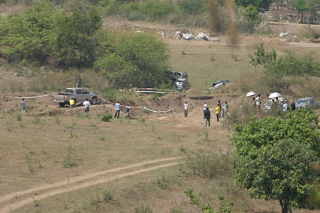 พี่ชนบท ประจำตำแหน่งบริเวณที่มีซุ้มต้นไม้เตี้ย และต้องขึ้นเนินชันยาว และมีร่องน้ำตรงกลาง กำลังให้คำแนะนำ