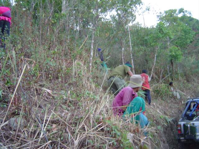 เส้นทางขึ้นเขาตลอดประมาณ 2 - 3 ก.ม. ช่วงสูงสุดขึ้นเขามองไม่เห็นทาง เห็นแต่ท้องฟ้า แล้วเส้นทางมีเลี้ยวซ้ายจะสังเกตุทางได้อย่างเดียวคือผนังดินด้านซ้ายเท่านั้น
