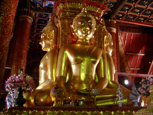 พระประธานจำลองให้ไว้ปิดทองครับ เป็นแบบจตุรทิศ ไม่รู้ว่าเรียกถูกรึปล่าว เพราะเห็นว่ามี 4 ทิศ