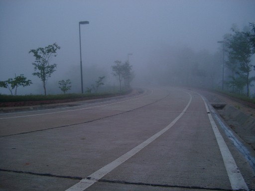 เส้นทางขึ้นมายังพระตำหนักหมอกปกคลุมหนา