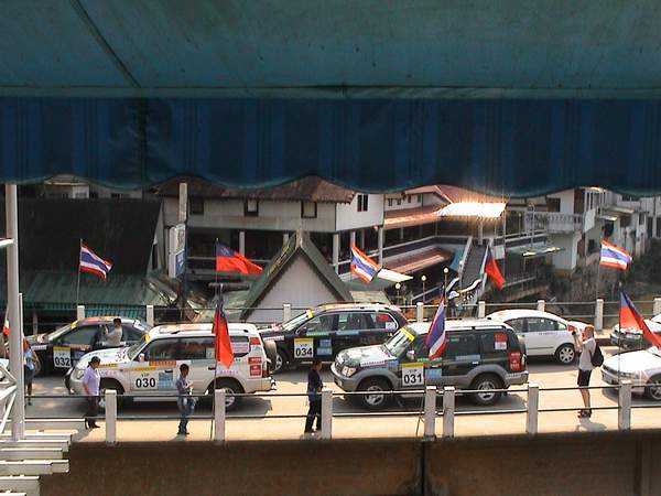 วันนี้เวลาประมาณ15.00น.ขณะนั้งเล่นอยู่หน้าบ้านมองไปที่สะพานไทยพม่าเห็นกองคาราวานรถยนต์ท่องเที่ยวจากประเทศจีนกำลังวิ่งข้ามมาจากประเทศพม่าเข้ามาประเทศไทยทางด้านอำเภอแม่สายคงไม่น้อยกว่า50คันหรืออาจมากว่าขณะทำพิธีการเพื่อเข้าประเทศ........005ก็เลยถือโอกาสหากล้องมาเก็บภาพเอาไว้....พร้อมกับคิดว่าเมื่อไรสมาชิก@Weekendhobby.comพวกเราจะได้มีโอกาสร่วมเดินทางกันแบบนี้บ้างเพื่อผ่านพม่าไปประเทศจีน..เหมือนอย่างที่เขามาเยี่ยมเยียนเรา.............