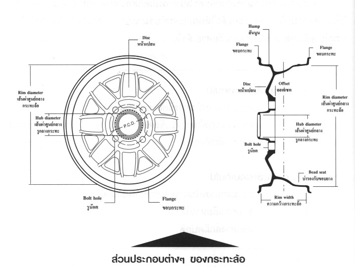 Offset คือ ระยะห่างระหว่างเส้นกึ่งกลางกระทะล้อ (Center Line Of Rim) กับหน้าแปลนดุมล้อ (hub disc