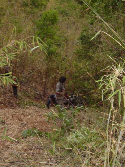 เนื่องจากทางชัน ทำให้การลากทำได้ลำบาก ถึงช่วงเย็นก็ลากมาได้ประมาณครึ่งทาง