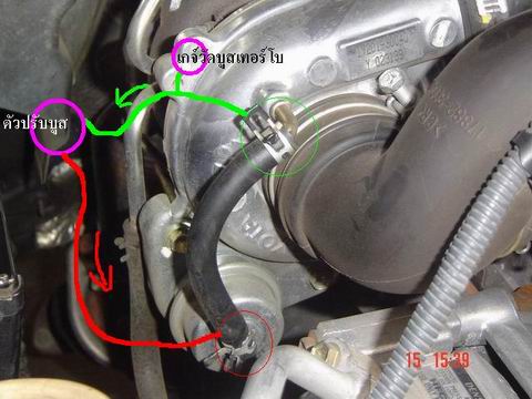 ในความเห็นส่วนตัวของผมนะ ผมว่าการต่อสามทางสำหรับวัดบู้ส ควรจะต่อจากจุดบริเวณท่อร่วมไอดี เพื่อที่จะได้ทราบปริมาณอากาศที่แท้จริงที่เทอร์โบทำงานมา