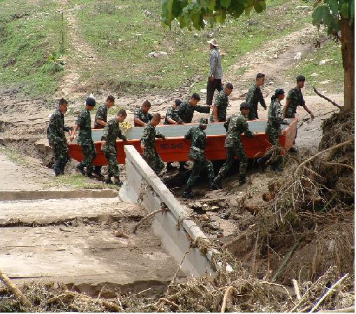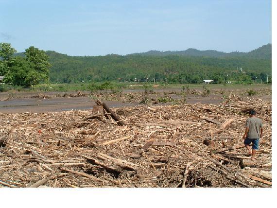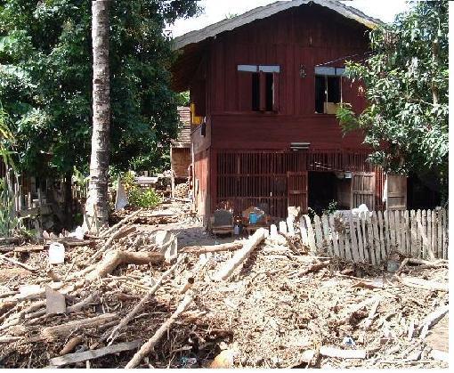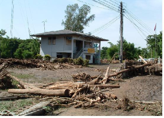 ผมนำรูป (ถ่ายเมื่อ 22 พ.ค. 47) มาให้ดูถึงความเสียหายของชาวบ้านที่โดนน้ำป่าไหลหลากท่วม ตำบลแม่ตื่น อำเภออมก๋อย ซึ่งเป็นผลอันมาจากการตัดไม้ทำลายป่า