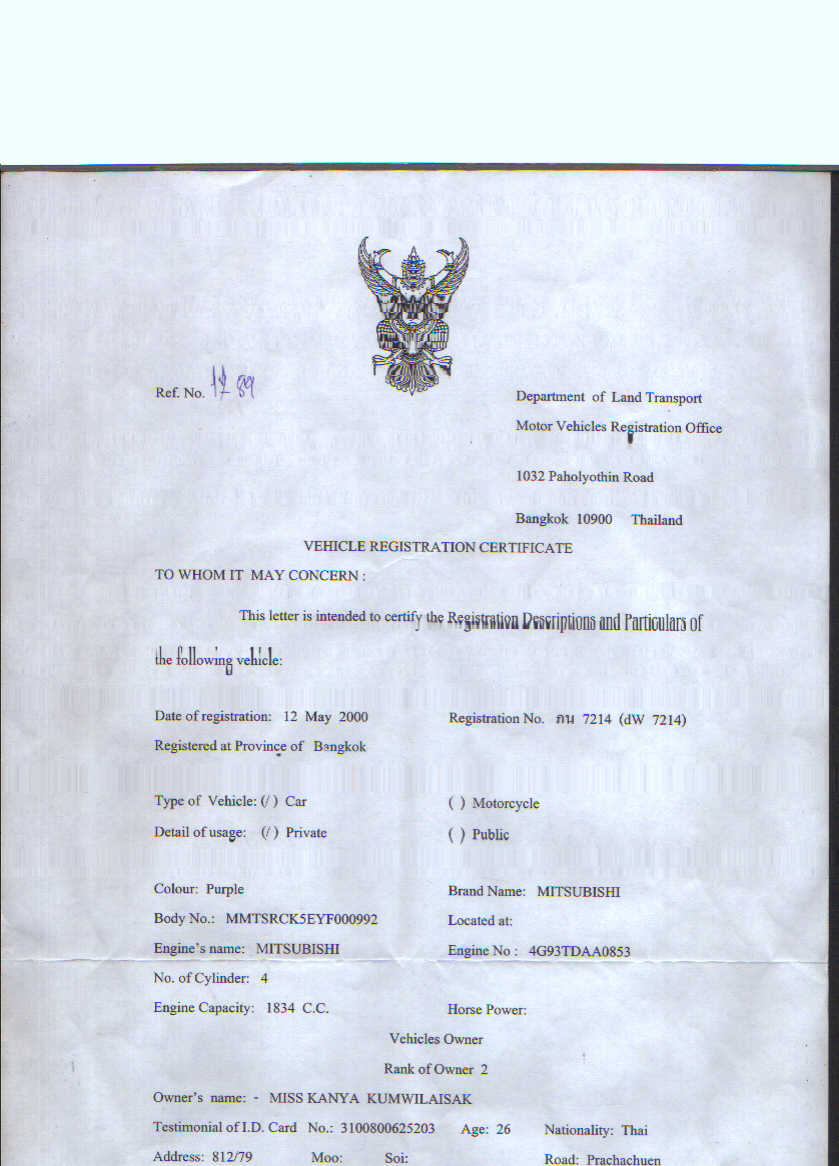 ในกรณ๊ที่เป็นเจ้าของรถเอง นำสมุดจดทะเบียน ไปขอใบรับรองเป็นภาษาอังกฤษ หรือที่เขาเรยกว่า เอาทะเบียนไปแปลอะครับ โดยไปแปลได้ที่ขนส่งจังหวัดทุกจังหวัด