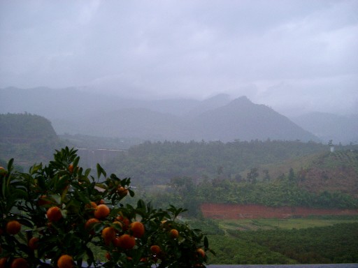 ยืนที่หน้าบ้าน ชมสวนส้มครับ เสียดายที่ฝนตก ถ้ามีสายหมอกยามเช้าด้วยจะงดงามกว่านี้เน้อ