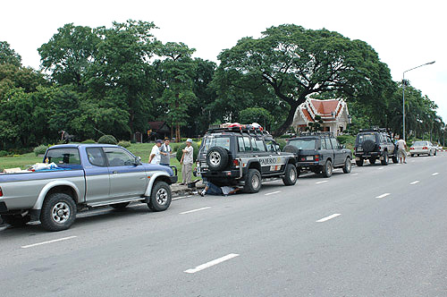 ต้องจอดอีกครั้งเพราะพี่จูนทนไม่ไหวจำเป็นต้อง "เด็ดดอกไม้" จะไปเด็ดข้างทางก็กลัวตัวทาก (ระหว่างทางมีชุกชุม) เลยเด็ดมันกลางถนนนั่นแหละ ที่หน้ารถนายตี๋พร้อมกับเอาร่มกันฝนบัง "ดอกไม้" ไว้อีกที ใช้เวลาตั้ง 5 นาที อะไรมันจะมากมายขนาดนั้น (สงสัยมี "เนื้อ" หลุดมาด้วยมั้ง??)