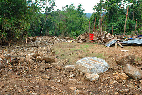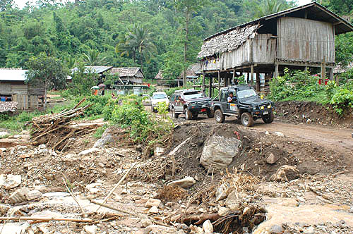 ระหว่างทางก็มีเลี้อยไปเลี้อยมาบ้างเพราะความลื่นของดินมีลากวินส์บ้างเล็กน้อย จนมาถึงจุดแรกที่โดนน้ำถล่ม หินก้อนใหญ่ๆขนาดนี้ยังปลิวมากับน้ำได้