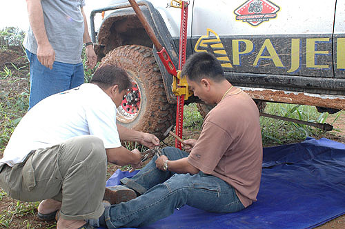 ถึงกลางทางซึ่งเป็นจุดที่สูงที่สุดในทริปนี้ (ประมาณ 1,635 เมตร) รถของพี่โอตัวตั้งทอร์ชั่นบาร์ขาด จึงต้องจอดซ่อมตรงจุดนี้จนถึงวันรุ่งขึ้น