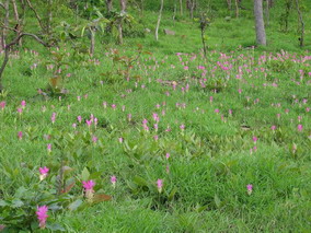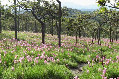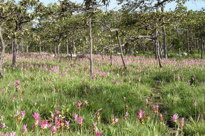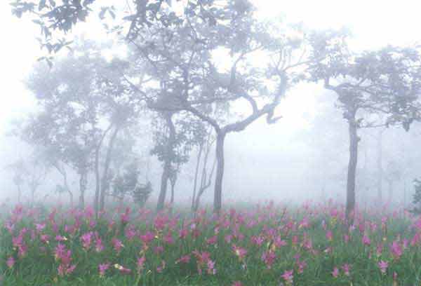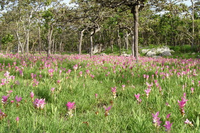 ท่องเที่ยวดอกกระเจียว(Siam Tulip)บาน ละลานตาที่ป่าหินงาม ในช่วงเดือนมิถุนายนถึงต้นเดือนสิงหาคม เป็นช่วงของฤดูฝนที่นักท่องเที่ยวไม่ค่อยนิยมเที่ยวป่าเขานัก แต่ที่จังหวัดชัยภูมิไม่ได้เป็นเช่นนั้น เพราะเป็นช่วงที่นักท่องเที่ยวต่างพากันหลั่งไหลเข้ามาชมความงดงาม ของทุ่งดอกกระเจียวที่ออกดอกสีชมภูอมม่วง ตัดกับใบสีเขียวสด และยังได้สัมผัสกับไอหมอก ท่ามกลางความงดงามตระการตาของปฏิมากรรมทางธรรมชาติ ของหินล้านปีรูปต่างๆ กระจายอยู่ตามทุ่งหญ้า เป็นบริเวณกว้าง ในอุทยานแห่งชาติป่าหินงาม ซึ่งมีพื้นที่ 112 ตารางกิโลเมตร หรือ ประมาณ 70,000 ไร่ ทุ่งดอกกระเจียวที่เปรียบเสมือน ราชินีแห่งมวลไม้ดอกของขุนเขาป่าหินงาม ดอกกระเจียวเป็นพืชล้มลุก ประเภทหัว สกุลเดียวกับขมิ้น ลักษณะของดอกกระเจียวคล้ายดอกข่า สวยงามมากทั้งดอกสีชมภูอมม่วง และดอกสีขาว ออกดอกสวยตระการตาไปทั่วผืนป่าในช่วงฤดูฝนประมาณเดือน มิถุนายน ถึง สิงหาคม ูฝนปีนี้ดูเหมือนว่าจะมาเร็วกว่าทุกปี ในแต่ละปีที่ผ่านมานี้ นักท่องเที่ยวที่นิยมมาเที่ยวชมทุ่งดอกกระเจียว ณ อุทยานแห่งชาติป่าหินงาม เป็นจำนวนมาก ซึ่งนักท่องเที่ยวสามารถเดินทางโดยรถยนต์จากกรุงเทพฯ ใช้ทางหลวงหมายเลข 1 (พหลโยธิน ) ถึงสระบุ รีเลยไป ทางไปลพบุรี ประมาณ 15 ก.ม. แยกขวาไปตามเส้นทางหลวงมายเลข 21 ( พุแค - หล่มสัก ) มีป้ายบอกว่าไปลำนารยณ์ ประมาณ 80 ก.ม. ถึงแยกเข้าลำนารรยณ์ อ.ชัยบาดาล ใช้ทางหลวง 205 ( สุรนารายณ์ ) ประมาณ 48 ก.ม. จะถึง อ.เทพสถิต แยกซ้ายอีกครั้งเพื่อไปอุทยานแห่งชาติป่าหินงาม ซึ่งมีป้ายบอกทางตลอดเส้นทาง อีก 29 ก.ม. รวมระยะทางประมาณ 270 ก.ม. ในปีนี้ จังหวัดชัยภูมิ ได้กำหนดจัดงาน เทศกาลท่องเที่ยวดอกกระเจียวบาน ละลานตาที่ป่าหินงาม ขึ้น ตั้งแต่เดือนมิถุยายนเป็นต้นไป ซึ่งเป็นช่วงที่ดอกกระเจียวกำลังออกดอกบานสะพรั่งเต็มผืนป่าหินงาม และเปิดโอกาศให้นักท่องเที่ยวได้เข้ามาสัมผัสความสวยงามละลานตาของทุ่งดอกกระเจียว ณ อุทยานแห่งชาติป่าหินงาม อ.เทพสถิต จ.ชัยภูมิแห่งนี้ ตั้งแต่เดือนมิถุนายนนี้เป็นตันไป