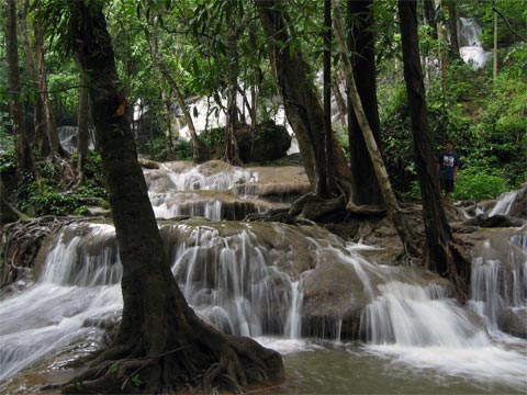 คุณป๋องครับ เข้าทางถ้ำพระธาตุ(เลยทางเข้าน้ำตกเอราวัณมาหน่อยแล้วเลี้ยวซ้าย)ทางส่วนใหญ่เป็นหินอัดแน่น มีทางดินบ้างเล็กน้อยพอให้ลื่นได้บ้างในระยะนี้ ขากลับวิ่งออกข้างหลังเหมือนตำตอบ23 ถ้าลัดโดยการวิ่งตรงขึ้นไปตรงทางแยกไปขึ้นเท้งได้สนุกแน่นอนเนื่องจากทางดินชัน(ไม่แน่ใจว่าทางนี้ปิดไปแล้วหรือยัง) จากนั้นก็เป็นทางอัดแน่นไปจนถึงทางลัดไปบ้านสะพานลาวช่วงนี้ก็มีบางช่วงที่สนุกเพราะทั้งลื่นและชันหลายช่วง คงได้ใช้เกียร์โลว์บ้าง แต่ครั้งสุดท้ายที่ผ่านในหน้าแล้งที่ผ่านมามีการเอาหินก้อนใหญ่มาลงกลบร่องเก่า อาจจะสบายขึ้นบ้าง แต่ออกทางนี้นอกจากผ่านฝาสววรค์แล้วยังมาเล่นน้ำร้อนและชมความงามของผาตาด(ช่วงนี้สวยจริงๆครับ)ได้ด้วย แต่เที่ยวแม่ขมิ้นหน้านี้ควรขนน้ำใช้เข้าไปด้วย ปีก่อนที่เข้าไปจำได้ว่าน้ำในห้องน้ำที่อาบล้างแปรงฟันแดงและข้นจริงๆเหมือนน้ำตกที่คุณมะเหมี่ยวเอามาให้ดูละครับ