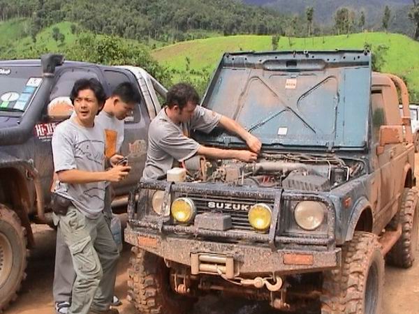 แมงหวี่ของคุณท๊อดฟั่งชาวออสเตรเรียเริ่มมีปัญหาเรื่องหม้อน้ำรั่ว..จนในที่สุดต้องเรียกวิทยุไปขบวนข้างหน้าขอน้ำยาอุดรอยรั่วหม้อน้ำจากคุณหนุ่ยแห่งจิ๊บคลับเชียงใหม่ที่เดินทางล่วงหน้าไปไกลแล้วโดยมีแมงหวี่อีกคันอาสาขับรถย้อนกลับนำเอามาให้