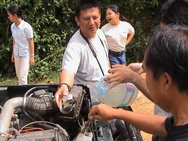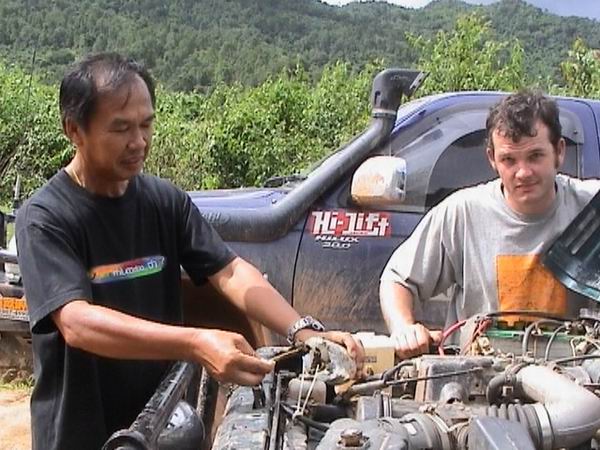 การเดินทางจากไชยะบุรีเข้าสู่เมืองหงสาขบวนเริ่มแตกเป็น3-4กลุ่มเพราะสภาพเส้นทางและรถบางคันเริ่มมีปัญหาโดยเฉพาะคาริบเบี้ยนของคุณท๊อดที่ต้องใช้ยาหลายขนาน..เริ่มตั้งแต่น้ำยาอุดหม้อน้ำ...ไข่ดิบ2ฟอง...สบู่ทำให้เหลวแล้วอุกรอยรั่ว...จนถึงมะขามเปียกแกะเม็ดออกแล้สใส่เข้าไปในหม้อน้ำใครว่าสูตรไหนดีก็เอามาใช้กันหมดแต่ไม่เป็นผลจะถอดมาทำก็คงเสียเวลามากแน่ๆเพราะเห็นว่าถอดยาก