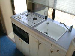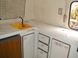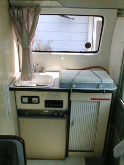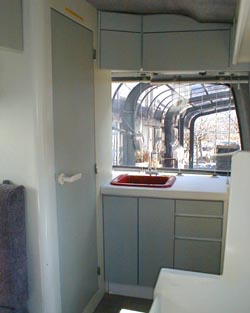 ภายในมีม่านรอบคัน มุมมองระหว่างทางเข้าห้องครัว