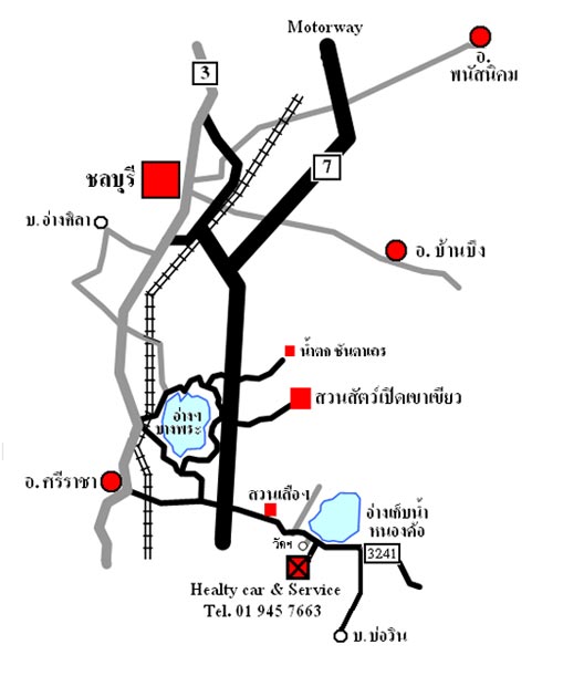 .......1.การไป Healty car & Service (จุดนัดพบ) ถ้ามาจาก Motor way ให้เข้าทางเดียวกับสวนเสือศรีราชา (เลยแยกบ้านบึงไป)