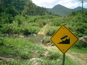 ตอบในกระทู้ก่อน ป้ายเตือนข้างหน้า มีน้ำไหลผ่าน (คือถนนลาดยางนะครับ แต่ขับไปเรื่อยๆ พอเจอป้ายน้ำก็ต้องขับรถข้ามน้ำ อย่างเดียว ไม่มีสะพานครับ) เห็นมีป้ายแปลกๆ มาอีกหลายป้าย อยากให้เพื่อนๆ ส่งมาให้ดูอีกครับ (ยกเว้นอย่าส่ง "ป้ายสี" กันมานะครับ)