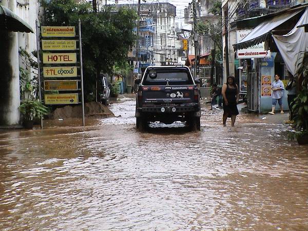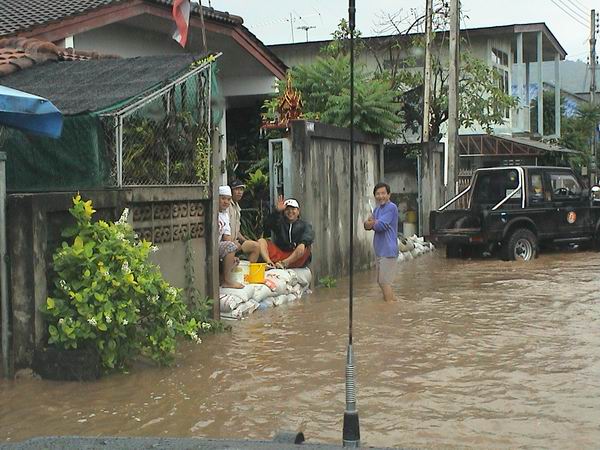 จากการที่ฝนได้ตกลงมาตั้งแต่วันที่8/9/47จนถึงวันที่9/9/47โดยไม่มีทีท่าว่าจะหยุดลงได้..พอถึงวันนี้9/9/47เวลาประมาณ11.00นสายน้ำแม่สายก็ได้ล้นฝั่งเข้ามาท่วมถนนสายริมแม่น้ำซึ่งเป็นที่ตั้งของบ้านม้า005เอง...ก็ถือโอกาสรายงานสดๆเพราะถึงเวลานี้สายน้ำก็ยังเพิ่มสูงขึ้นเรื่อยๆฝนก็ยังไม่มีทีท่าว่าจะหยุดเม็ดลง.....................