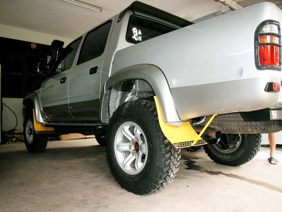 ยังมีรายละเอียดปลีกย่อยหลายอย่างเช่น ตัดต่อคอเสื้อเพลาเพื่อใช้จานดรัมเบรคเดิม เพื่อคงใช้เบรคมือเดิมได้ ใช้ ABS ได้เหมือนเดิม เบ็ดเสร็จ 30000 มีเหลือนิดหน่อย ทำเสร็จทดสอบวิ่งตรงเป๊ะไม่ต้องตั้งศูนย์เจ้าของรถบอกมาอีกที แฮะๆๆ ไม่ใช่รถผมหรอกครับ.....