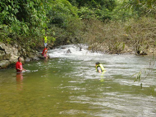 บริเวณนี้มีน้ำวนเล็กน้อย . ถ้าว่ายน้ำไม่แข็งแนะนำให้ใช้ชูชีพ