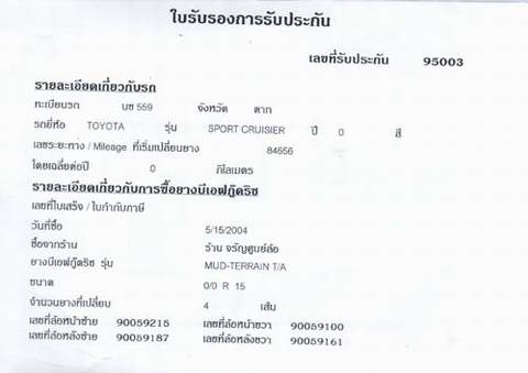 ซื้อยางแล้วอย่าลืมขอใบรับรองรับประกัน ด้วยนะ