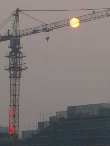ยามเช้าที่กวางเจา เต็มไปด้วยหมอกและฝุ่นปนกัน