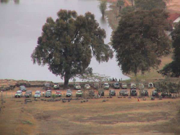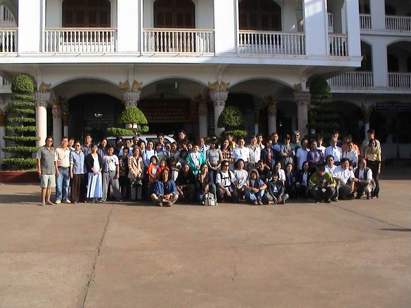 วันที่17/1/46เวลา8.00น.พวกเรานัดหมายให้ไปเจอกันที่ช่องเม็กเพื่อทำพีธีการผ่านแดนรถใครยังไม่ได้เติมน้ำมันก็ให้จัดการกันให้เรียบร้อยเวลา08.00น.รถทั้งหมด26คันก็ไปพร้อมกันที่ด่านช่องเม็ก ต้องขอขอบคุณคุณศักดิ์และทีมงานพวกเราได้รับความสะดวกสบายเป็นย่างยิ่งใช้เวลาหน้าด่านเพื่อทำพิธีการไม่ถึง20นาทีรถทั้งหมด26คันก็เคลื่อนขบวนเขาสู่ประเทศลาวได้ทันทีตรงจุดนี้ต้องขอชมเชยทีมงานที่ได้มีการประสานงานกันไว้ล่วงหน้าเป็นอย่างดีทำให้ไม่เสียเวลา พอข้ามด่านพรมแดนไปก็ตามประสาคนไทยนักช๊อบฯก็ต้องหยุดขบวนไว้ก่อนให้พี่ไทยได้มีโอกาสใช้ตังโดยการลงไปเดินช๊อบปิ้งที่ร้านดิวตี่ฟรีใช้เวลาตรงนี้ประมาณ30-40นาทีมีของขายมากมายทั้งขนม เหล้า เบียร์อื่นๆ สิ่งแรกที่ผมได้สัมผัสประเทศแห่งนี้ก็คือความมีไมตรีจิตของประชาชนชาวลาวที่ให้การต้อนรับโอภาปราศรัยกับพวกเราโดยไมตรีจิตจริงๆทำให้ไม่รู้สึกว่าเรากำลังอยู่อีกประเทศหนึ่งที่ไม่ใช้บ้านของเรา เรื่องที่2ก็คือการคมนาคมพวกเราหลายๆคนคาดการผิดไปหมดเราคิดว่าคงต้องเจอกับถนนลูกลังดินแดงๆกันโดยทั้วไปแต่กลับไม่เป็นเช่นนั้น ลาว เขาได้พัฒนาเรื่องเส้นทางคมนาคมของเขาได้ดีพอสมควรทีเดียวถนนสายหลักโดยส่วนใหญ่ได้รับการลาดยางไว้เป็นอย่างดี