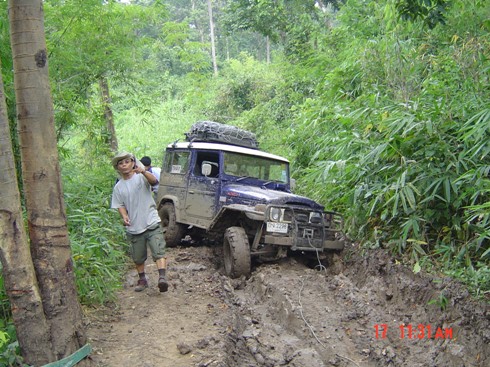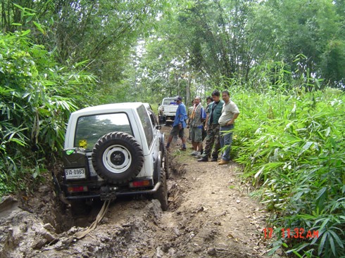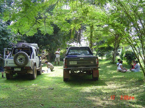 หมดแล้วตากอล์ฟที่เหลือเป็นถนนดำแล้วล่ะ.....ออกมาได้สักพักประมาณว่าถึงแถวทุ่งนางควรอีเบี้ยนหนึงในขบวนดันหม้อน้ำทะลุ.....ดับคาเท้าไปเลย...เลยจอดซ่อมกันที่หน่วยเกริงกระเวียเหมือนเดิมร่มรื่นดีจัง