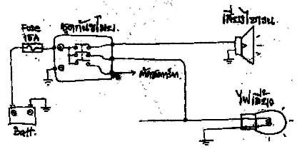 ชุดกันขโมยไปยังเสียงไซเรณ ; ไปยังไฟเลี้ยวทั้งหมด แต่ ถ้าอุปกรณ์ที่ต่อจากชุดกันขโมยเกิดลัดวงจร (Short)