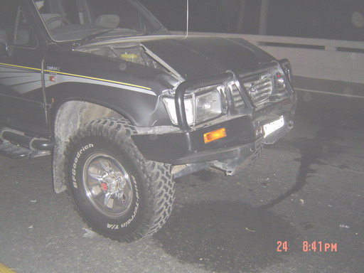 มีเรื่องเล่าสู่กันฟังครับ ทั้งประมาทและละเลยครับ เมื่อคืนวันอาทิตย์ผมกลับจากงานแต่งที่โคราชเข้าวงแหวนตะวันออกกำลังจะถึงรามอินทรา ได้ประสบอุบัติเหตุชนกัน 6 คันรวดผมคันที่ 4 บนสะพานข้ามคลองพอดี ความเสียหายดังภาพ เพื่อนผมบอกว่าถ้ามึงเช็คน็อตกันชนบ้างรถมึงคงไม่มีอะไรเสียหายเลย นี่คือสาเหตุของความละเลยครับ แต่มันก็ช่วยผมได้มากครับคันหน้าผมกระบะยุบเข้าไปครึ่งหนึ่งกระแทกแค็บบี้อีกและเขาเพิ่งออกมา3เดือนใบขับขี่ก็3เดือนเป็นคันต้นเหตุ คันหลังมุดกวาดฝากระโปรงและกระแทกถึงเครื่อง ส่วนความประมาทของผมคือความมั่นใจของผมเองผมไม่เคยคิดทำประกันไดๆเลยเพราะขับรถมา 10กว่าปีไม่เคยมีอุบัติเหตุเลยไม่เคยคิดจะทำ ชะตากรรมคือตอนนี้กำลังหาอะไหล่ซ่อมหน้าตัวเอง และได้ Post หาอะไหล่อยู่ไน Web นี้ และชะตากรรมที่กำรอคือราคาค่าซ่อมของรถคันหน้าช่วงท้ายครับ ตอนนี้ก็ได้แต่สมน้ำหน้าตัวเอง "เสียน้อยเสียยากเสียมากเสียง่าย" แล้วพี่ๆท่านไดมีอะไหล่เก็บไว้ไม่ได้ใช้ก็ขอความอนุเคราะห์ด้วยครับ ขอซื้อครับ